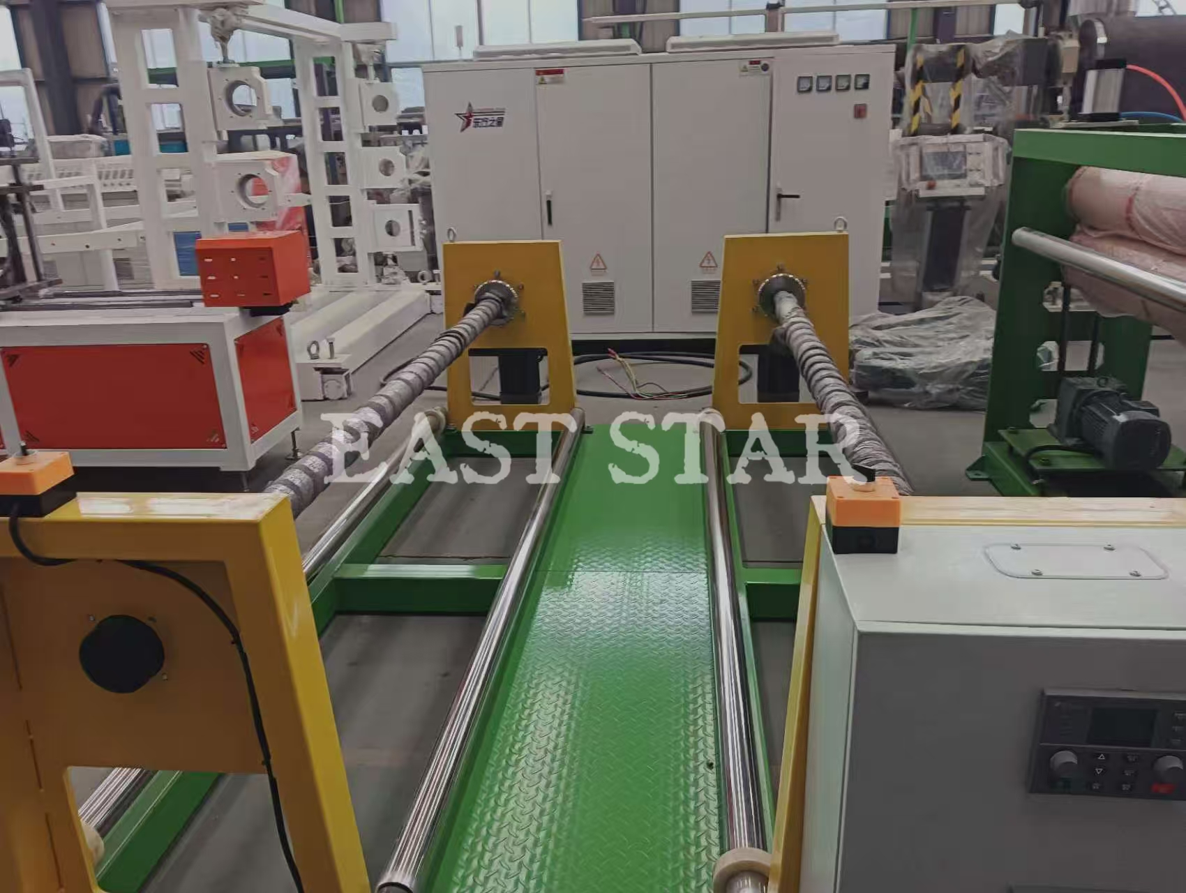 · Hiru erroiluen kalandria: estrusiozko xafla urtua hozten eta leuntzen du, azken produktuaren lodiera eta akabera zehatz-mehatz kontrolatuz.