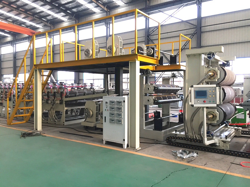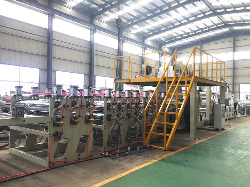 Qingdao EASTSTAR osoaPE aluminio-plastikozko panelen ekoizpen-lerroaSJ150×33 torloju bakarreko estrusore bat, trokel konposatu bat, hiru erroiluen kalandria, alde biko aluminiozko bobina desbobinatzailea, bi erroiluen laminatzaile termiko bat, zortzi erroildako laminatzaile termiko bat, sei erroiluen hozte-erroiluen euskarri bat, laminatore bat, lau erroiluen garraiatze-off bat eta ebakitzaile bat ditu. PLC sistema batek linea osoaren kontrol adimentsua ahalbidetzen du.