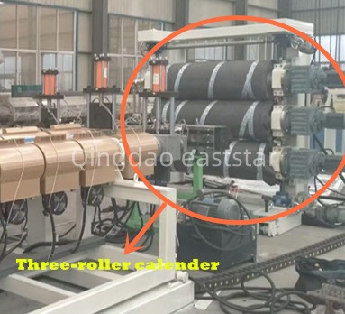 -ren trokel sistemaABS geruza anitzeko ko-estrusio xafla ekoizteko lerroaArmarria esekitzeko moduko fluxu kanalaren diseinua hartzen du, 2200 mm-ko trokelaren zabalera duena eta doitasun-banatzaile batez hornitua, geruza bakoitzean material banaketa uniformea bermatzeko. Hiru erroiluen kalandria Φ450 × 2500 mm-ko ispilu-akaberako arrabolekin hornituta dago, HRC58-62-ko arrabolaren gainazaleko gogortasuna eta 0,08 mm-ko kromatu-lodiera du. Kanal anitzeko diseinu berezi batek tenperatura uniformea bermatzen du. Arrabolaren tenperatura kontrolatzeko sistemak ur araztua bigundua erabiltzen du bitarteko gisa, tenperatura kontrolatzeko zehaztasunarekin ± 1 ℃, eta 2.2KW-ko hiru ur bero-ponpa eta 12KW-ko berogailuen hiru multzo ditu xafla osatzeko tenperatura-ingurune zehatza eskaintzeko.