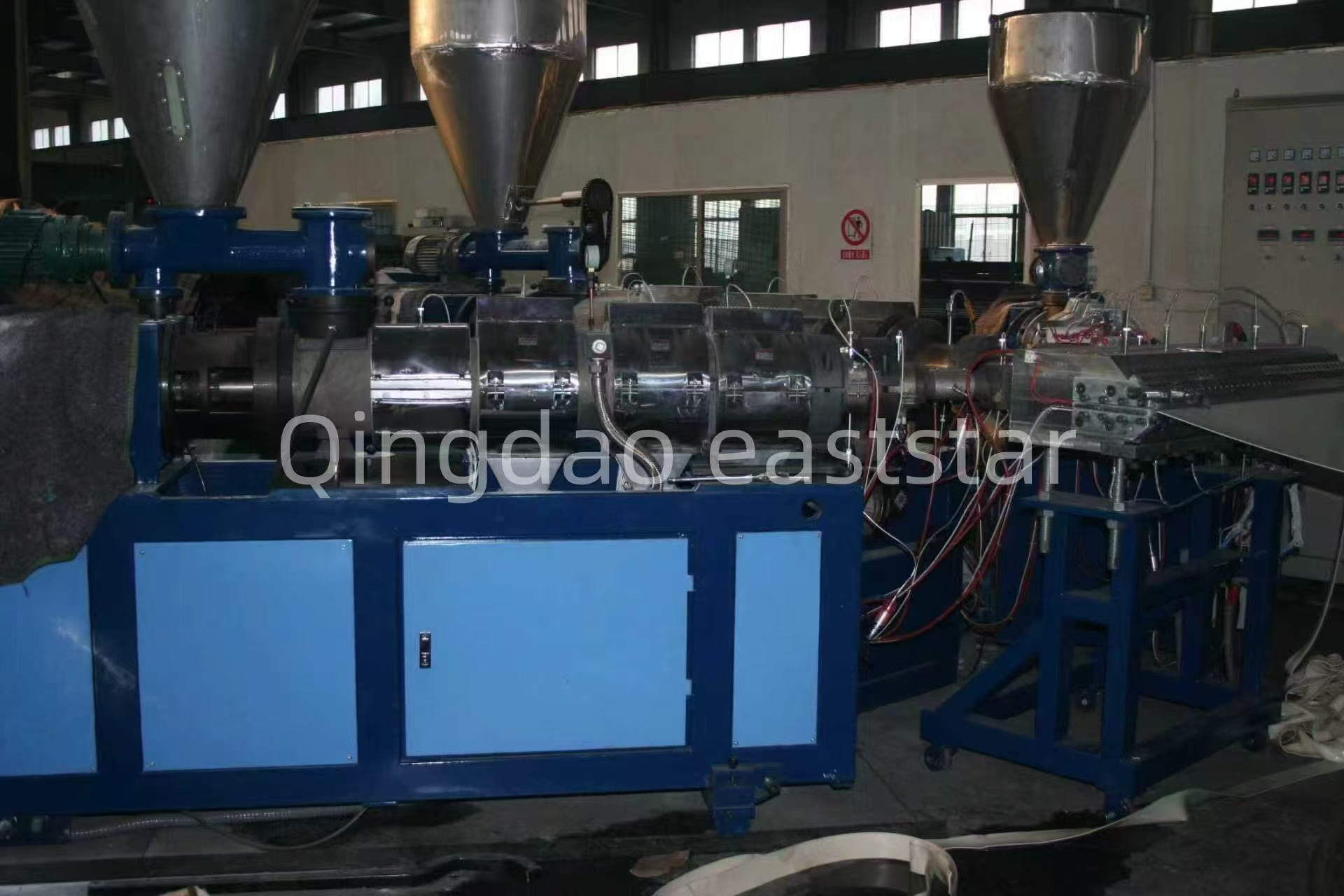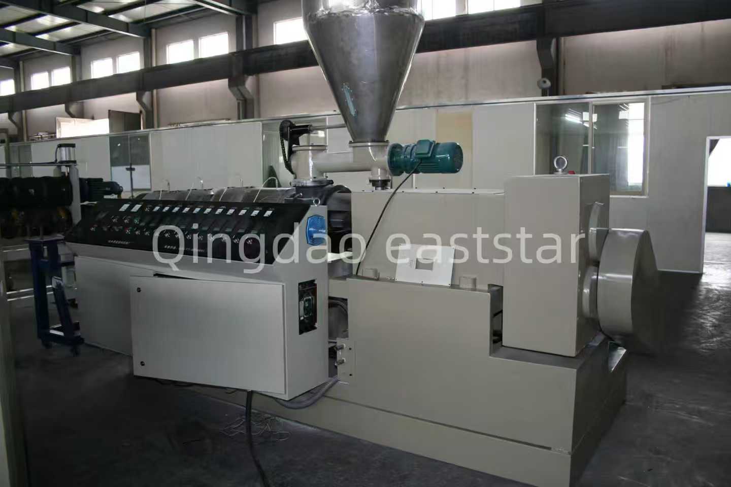 Oinarrizko ekipamenduaPC+ASA ko-estrusiozko xafla korrugatuak ekoizteko lerroatorloju bakarreko bi estrusore biltzen ditu, SJ-120 eta SJ-40, PC geruza eta ASA geruza estruzitzeko erabiltzen direnak, hurrenez hurren.