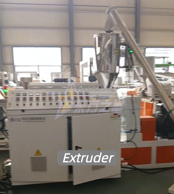 Hauplastikozko xafla ekoizteko lerroaPP/PE/PS/PET/PVC bezalako lehengaiak prozesatu ditzake (granulak edo birrindutako materialak barne), 60-120 kg/orduko ekoizteko ahalmenarekin. Ekoizpen-lerroa modu fidagarrian konfiguratuta dago, SJ-65-30/1 torloju bakarreko estrusore bat (L/D ratioa 30:1), 350 mm-ko zabalera eraginkorra duen xafla trokel bat (0,3-2 mm-ko lodiera duten produktuetarako egokia) eta hiru erroilu leuntzeko makina (arrabolaren diametroa 320 mm, ispilu akabera). Oinarrizko osagaiek etxeko eta nazioarteko marka ezagunen sistema elektrikoak erabiltzen dituzte, hala nola Siemens eta Omron, baita pare handiko engranaje-erreduzigailuak eta fabrikatzaile profesionalen torloju-upelak ere.HauPP/PS plantulen erretilu xaflaekoizpen-lerroaPP eta PS geruza bakarreko xaflak, PP eta PS koextrusionatutako bi koloreko xaflak, PP bi aldeetako gardentasun handiko xaflak, etab., blister ontzien industriarako.