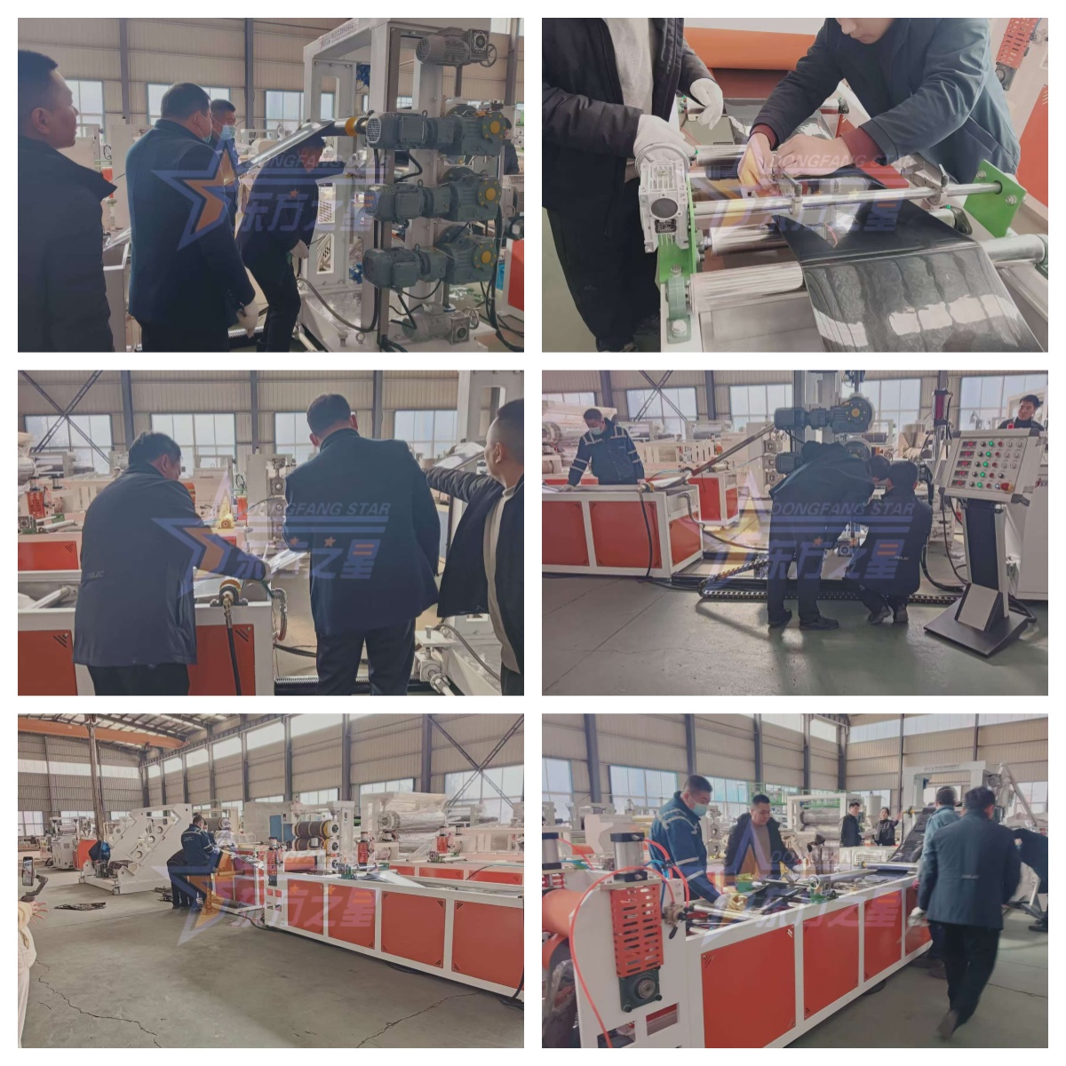 Gure Qingdao EASTSTAR fabrika bisitatu zuen bezero bat hartzeko ohorea izan genuen gure abian jartzea eta funtzionamendua ikusteko.PP/PS plantulak erretilu xafla ekoizteko lerroa. Bezeroak makinaren benetako funtzionamendua ikusi zuen, bere errendimendua zuzenean ezagutu zuen eta eztabaida tekniko sakonetan parte hartu zuen.