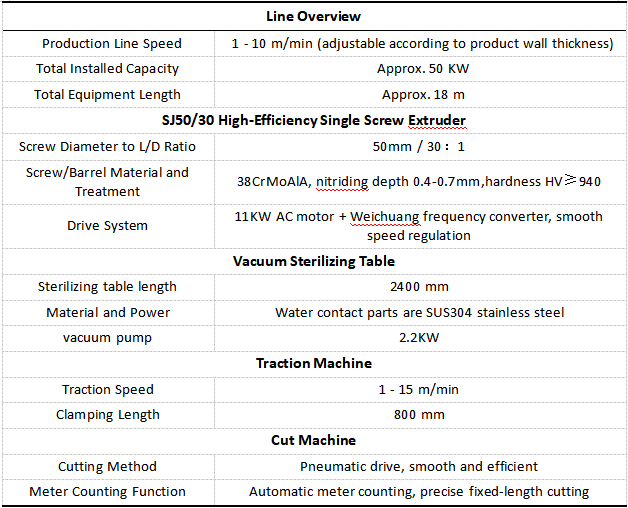 Honetarako konfigurazioalanpara-hodi-estalkia produkzio-lerroaekipamenduaren xehetasun nagusi batzuen inguruan zentratzen da. Bihotzean SJ50/30 torloju bakarreko estrusorea dago. 50 mm-ko torlojua du, 30 eta 1 arteko luzera eta diametroa duen erlazioarekin. Torlojua eta kanoia 38CrMoAlA altzairu nitruratutik datoz, eta horrek materialak guztiz urtzen laguntzen du, gauzak berdin mantentzen ditu eta irteera egonkorra ematen du PC, PS eta ABS bezalako gauza gogorretan ere.Lanpara-hodi-estalkia produkzio-lerroa11 kW-ko AC motor bat Weichuang maiztasun-bihurgailu batekin parekatzen du, beraz, abiadura kontrol zehatzean egon dadin. Gainera, hutseko elikadura eta deshezegailu lehorgailu automatiko batek PCa eta ABS bezalako lehengaien hezetasuna zaintzen du, estrusio-prozesurako urtzea kalitate handikoa izaten dela ziurtatuz. Linea osoak kontrol zentrala lortzen du Siemens tentsio baxuko piezen eta Omron tenperatura kontrolagailuen bidez, eta horrek dena fidagarritasunez funtzionatzen du.