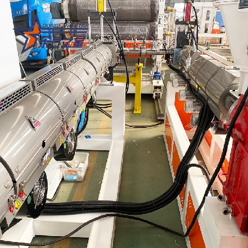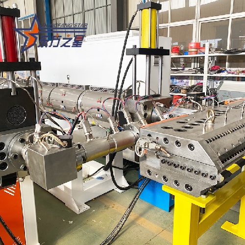 ABS koestrusio-lerroaEstrusio bikoitzeko konfigurazio fidagarri baten inguruan eraikita dago (120+60 eredua deitzen diogu). Estrusore nagusia SJ-120/35 indartsua da, 132KW-ko motor batekin, SJ-60/35 estrusore batekin parekatuta. Konbinazio honek A/B/A edo A/B geruzen egiturak leun eta etengabe maneiatzen ditu.