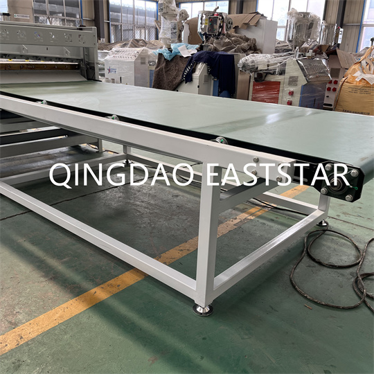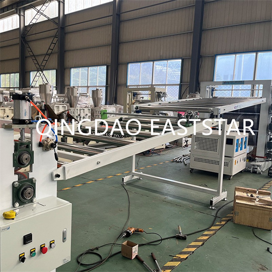 PVC-ko panelen ekipamendua torloju biko estrusore bat, plaka-molde bat, hiru arraboleko kalandria, hozte euskarria, gomazko arrabolen trakzio-makina, ebaketa-makina eta garraiatzeko gailu batez osatuta daude.