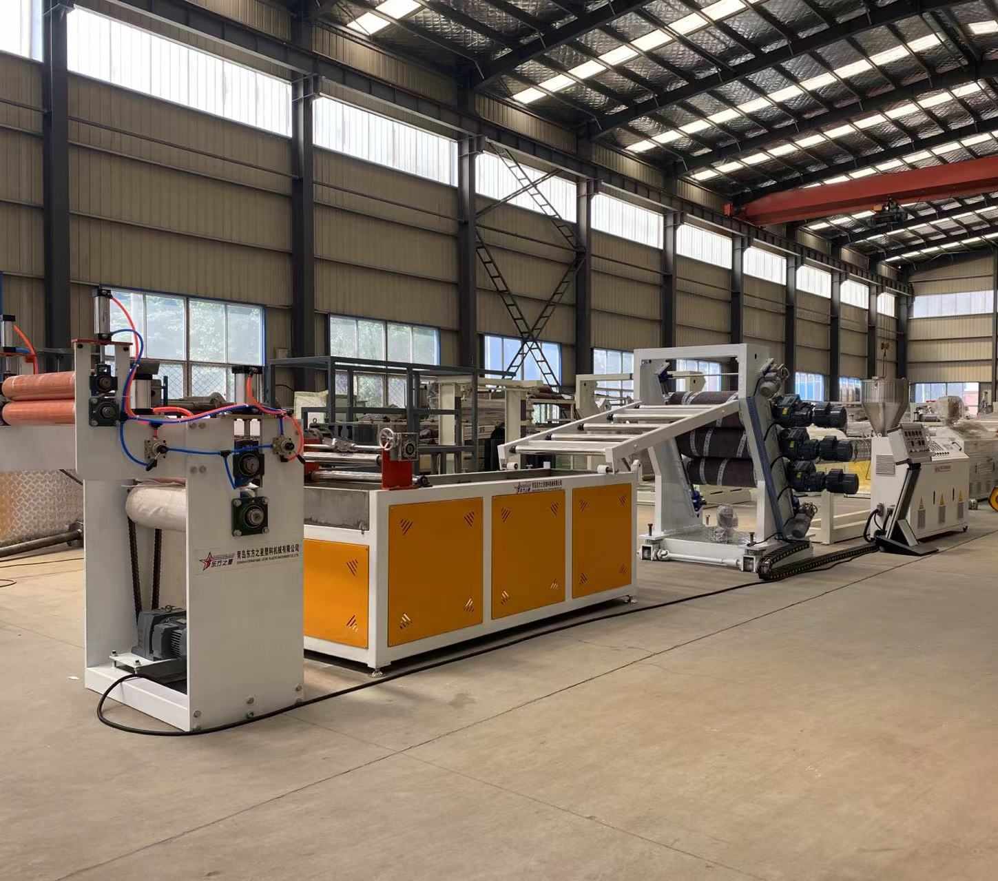 PVC gardeneko ate bigunetako gortinak ekoizteko lerroa: 200 eta 600 milimetro arteko zabalera eta 0,8 eta 3 milimetro arteko lodiera duten PVCzko plastiko gardenezko xaflak ekoizteko gai da. Ekipamenduak SJ90 edo SJ-120 torloju bakarreko estrusore bat, T formako trokel malgua erregulagarria, hiru arraboleko kalandria bertikala edo 45 graduko inklinazioa, ur-tenperatura-kontrolagailua hiru batean, altzairu herdoilgaitzezko hozteko euskarria ditu, zabalera zabaleko labana erregulagarri batekin hornituta, gomazko arrabolen eta aire-arbolaren trakzio-posizioa eta haize-erroilua. Ekoiztutako xaflek gainazal distiratsua dute, gardentasun handia, leuntasuna, pitzadurarik, usainik, burbuilarik gabe, eta malguak, hotzari erresistenteak, higaduraren aurkakoak, azido-alkaliekiko erresistenteak eta korrosioarekiko erresistenteak dira.