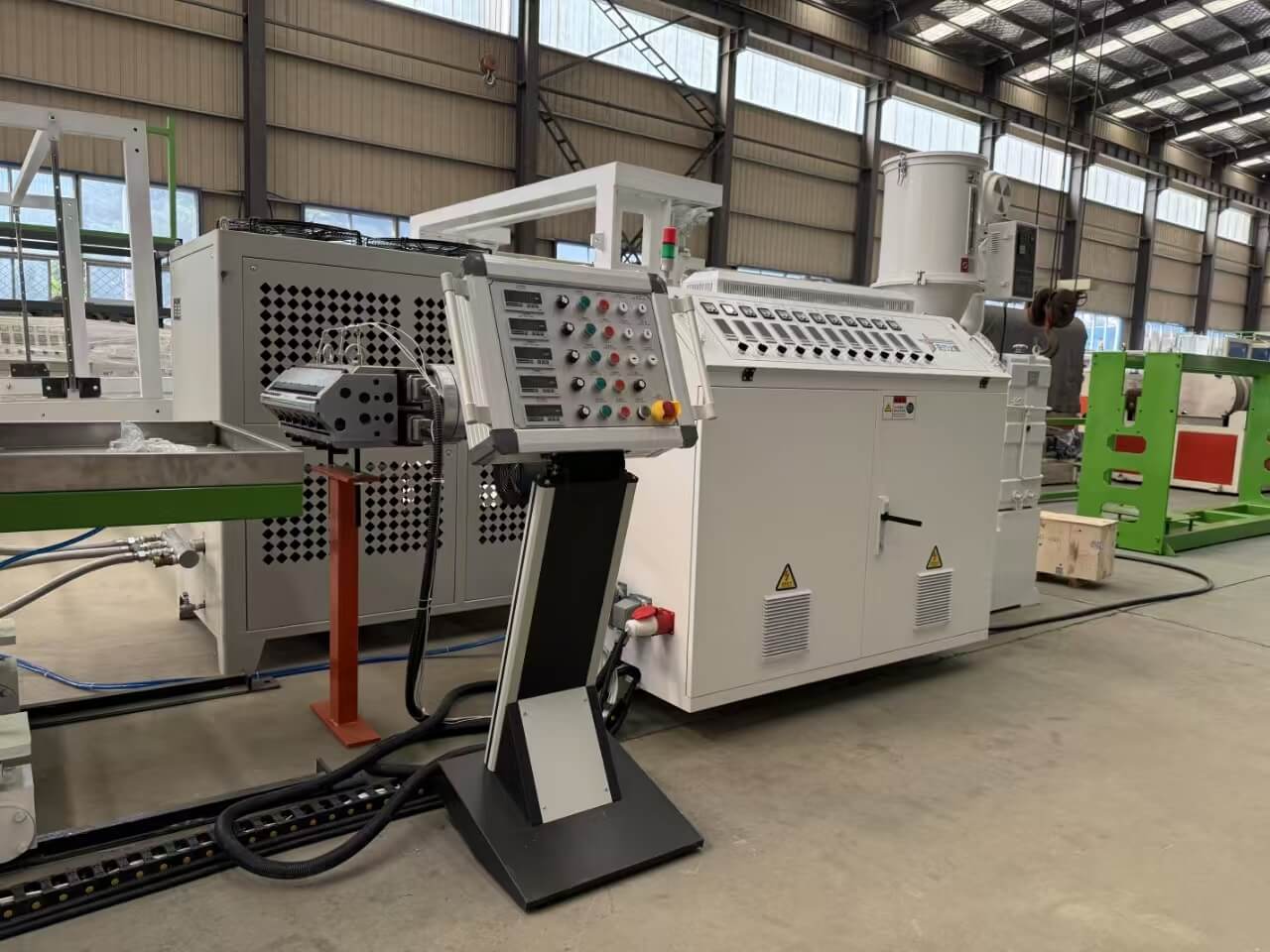 TPU/PE/PP/PS-300 xafla zabaleko estrusio-lerroa egokia da TPU/PE/PP/PS pelletak edo birrindutako nahasketak prozesatzeko.